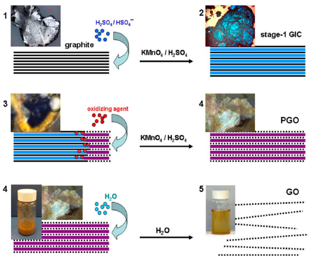 圖2. Hummers法反應(yīng)制備氧化石墨烯反應(yīng)機(jī)理圖[2]