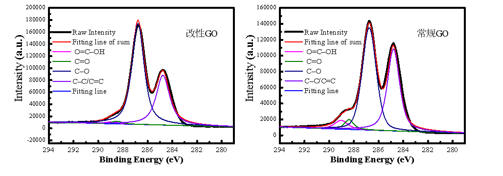 圖6. 不同缺陷程度的氧化石墨烯材料XPS C1s譜圖